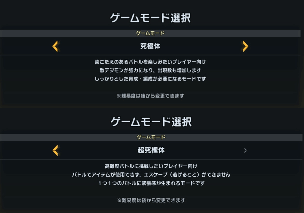 ここまで挙げたのは利便性での変更点ですが、モードチェンジデジモンは戦闘内で形態変化が出来るようになったりなど、このほかにも色々細かく改善されています。
