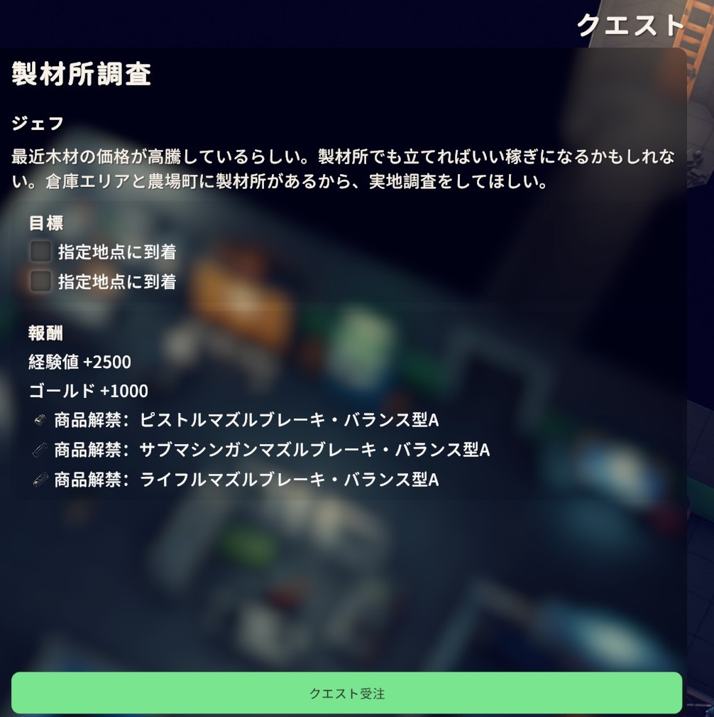 クエスト達成による販売品の増加:主に銃器、弾薬、アーマー、その他回復やバフアイテムなどは、クエストの進行に応じて店売り品が徐々に解放されるようになっています。このためクエストが進行すればするほどロスト後のリカバリーが簡単になるので、クエストを優先的に消化していく事も本作では重要になります。