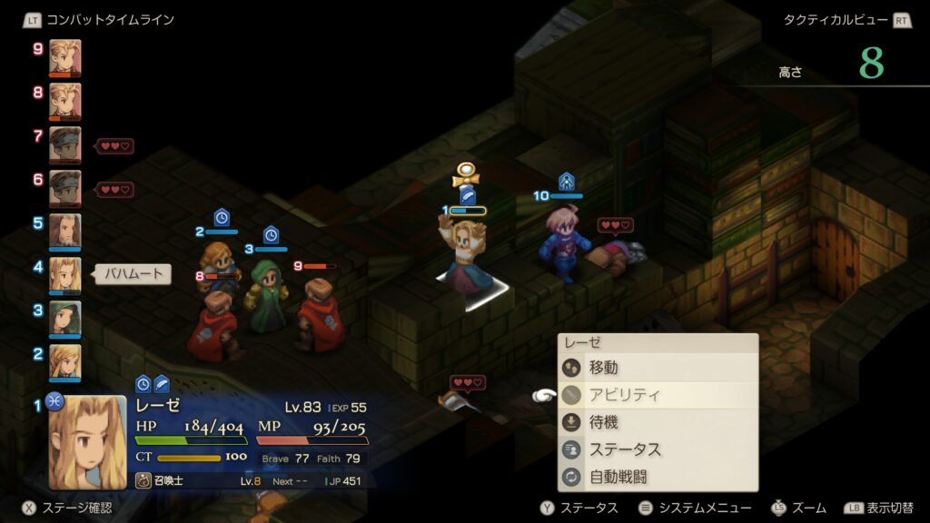 基本的なゲーム性は元のPS版と同様のものになっており、細かい調整やストーリーの改修なども一部入っているものの、大筋はシステム改修を入れて遊びやすくなったFFTといった感じのゲームになっています。そのため今時のゲームと比較して見た場合には少々古臭く感じる所もあるかもしれませんが、一方で倍速機能であったり、フルボイス化など、現代向けのアレンジも入っており、シミュレーションRPGとしては十分遊びやすいものになっています。