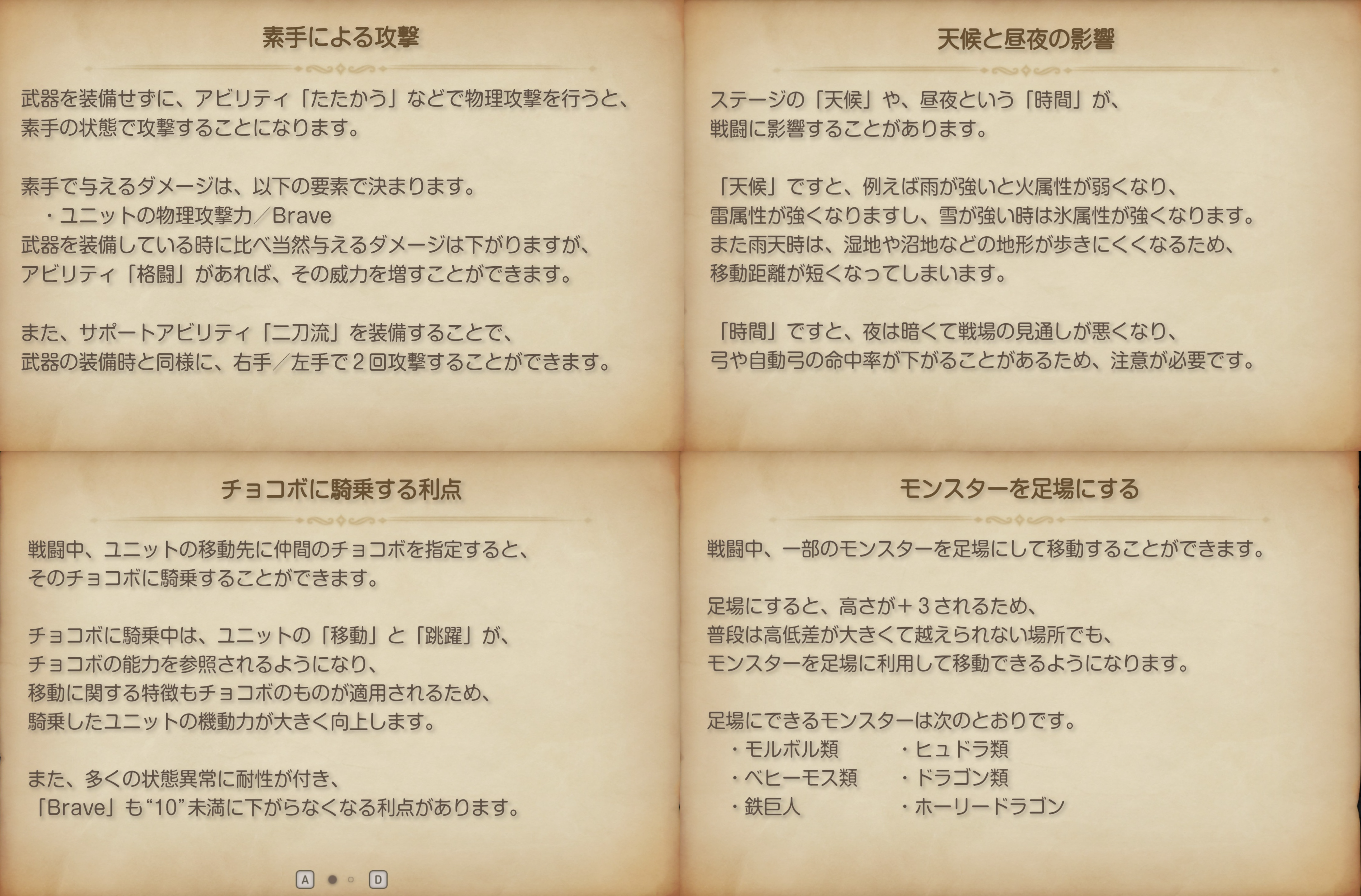 本作には原作とはまた別のヘルプ機能が追加されており、ゲームの基本的な所から、チョコボ搭乗時の仕様などかなり細かい所まで説明してくれているのですが、それはそれとしてヘルプで説明しきれていない要素がまだまだあります。