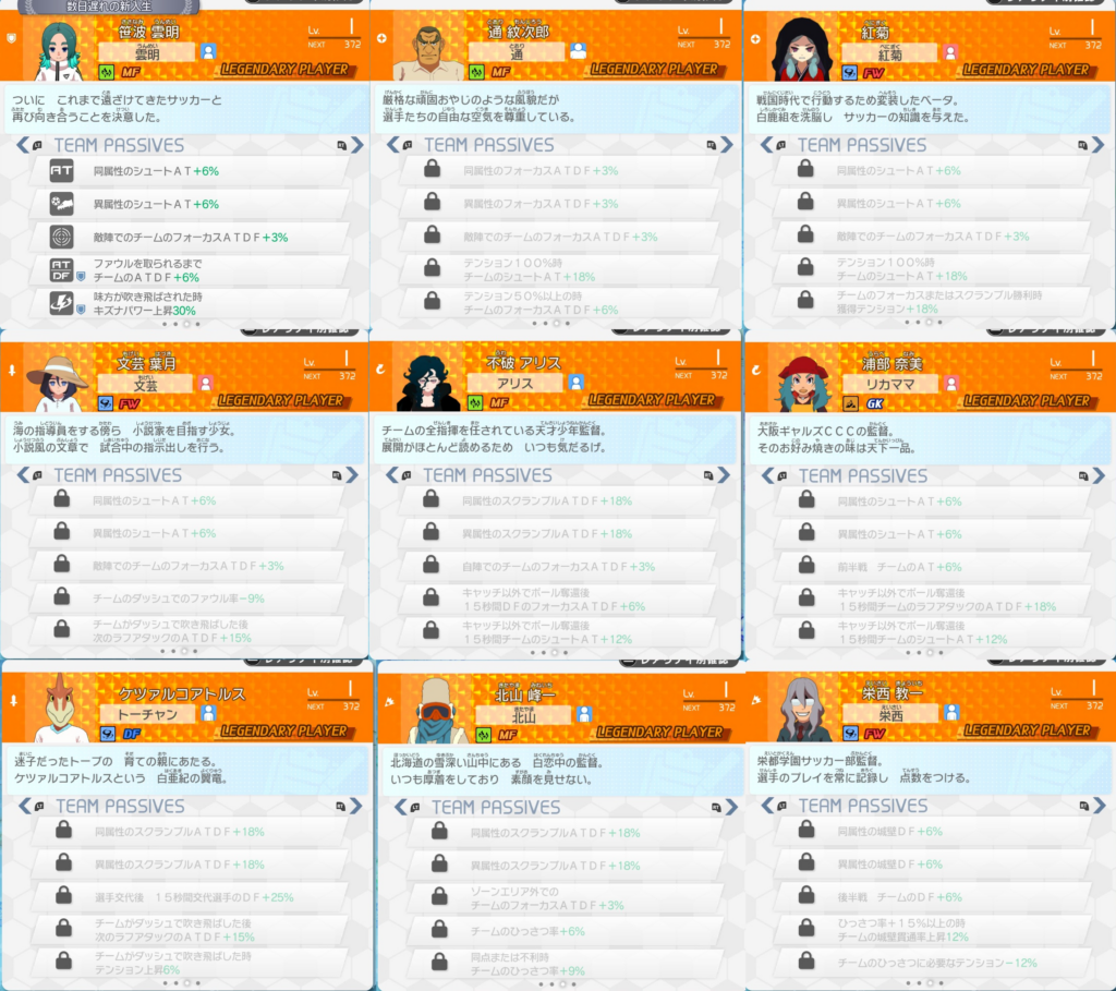 ただし画像を見ればわかるのだが、一部選手はクロニクル後半で戦うorキズナスター入手なので、すぐに手に入らない場合は、手持ちの監督・マネに該当パッシブ持ちがいないか自分で調べた方が速い場合も多い。