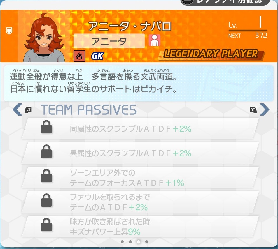 :ここまで度々用語としても出てきたが、初見だとよくわからない要素になりがちなキズナパワー。これはパスをすればするほど溜まっていき(最大30%)、キズナパワーに応じてシュート時のATが強化されるというものになっている。ただ一方でフォーカスバトル等に負けると減少するうえに、パス1回で1%しか溜まらない関係上、基本的にキズナパワー関係のパッシブスキルがないとかなり溜まりにくい要素にもなっている。