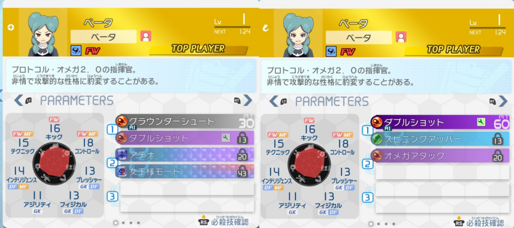 ↑上がフリーバトル産で下が監督選手から外して手に入れたもの